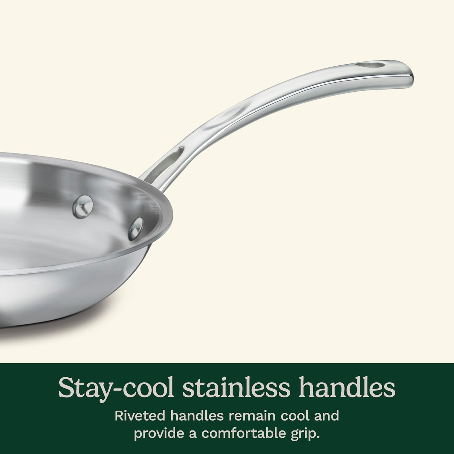 - Stay-Cool Handles: Riveted stainless steel handles remain cool on the stovetop and offer a secure grip.