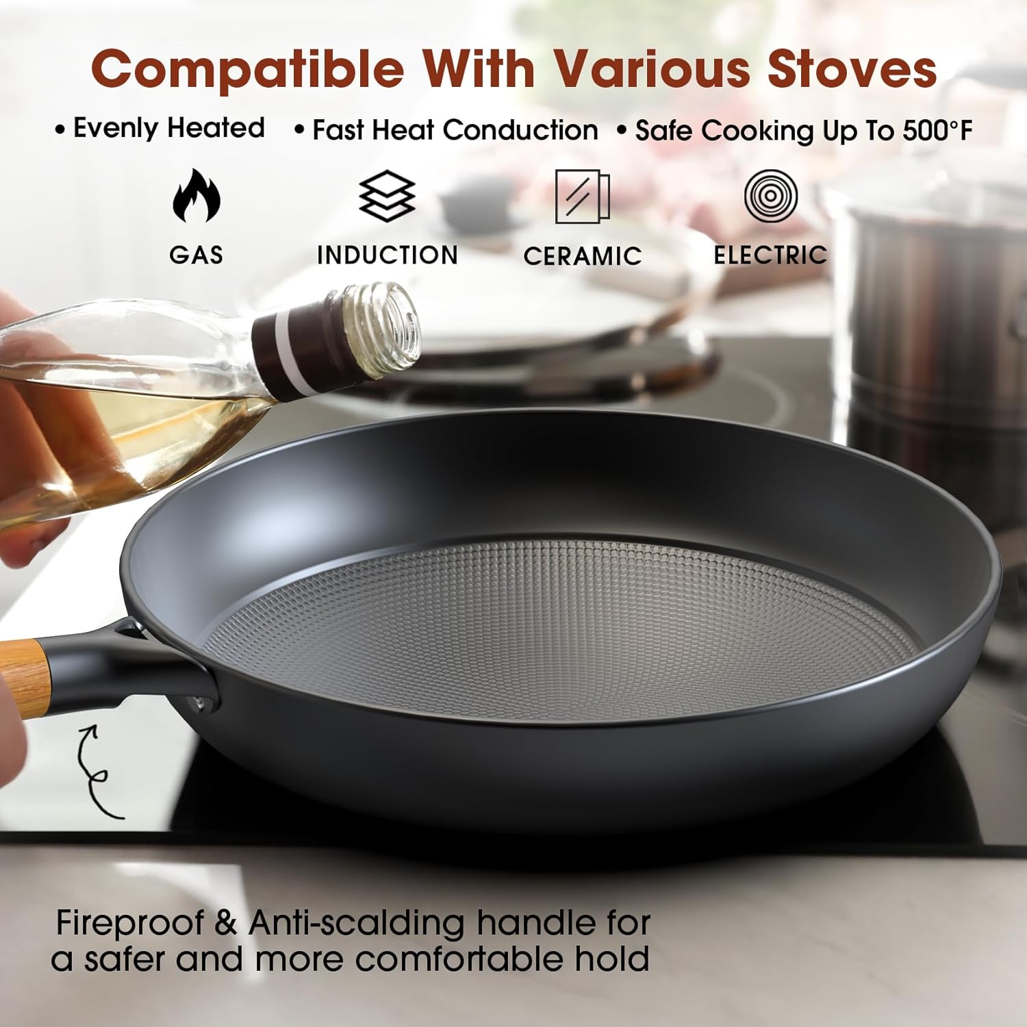 - Premium Nonstick Technology: German honeycomb etching with advanced coating for effortless food release and extended pan life.