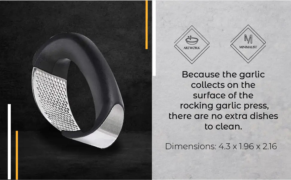 - Effortless Rocking Motion: The arc-shaped design allows for a back-and-forth rocking motion, making it easier to crush or mince garlic in half the time compared to traditional presses.