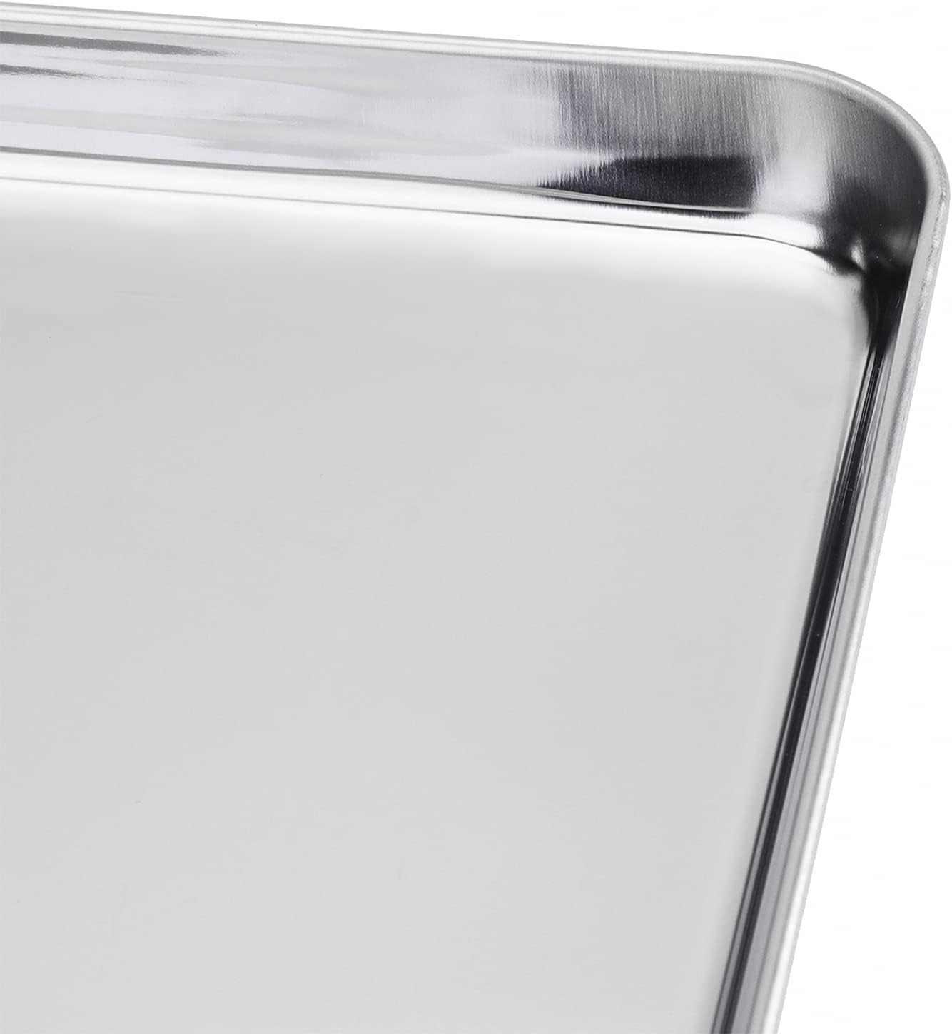 - Effortless Cleaning: Featuring a smooth, mirror-finish surface, these baking sheets are easy to clean. The deep sides prevent food juices from spilling, keeping your oven clean. They are dishwasher safe but can also be easily washed by hand.